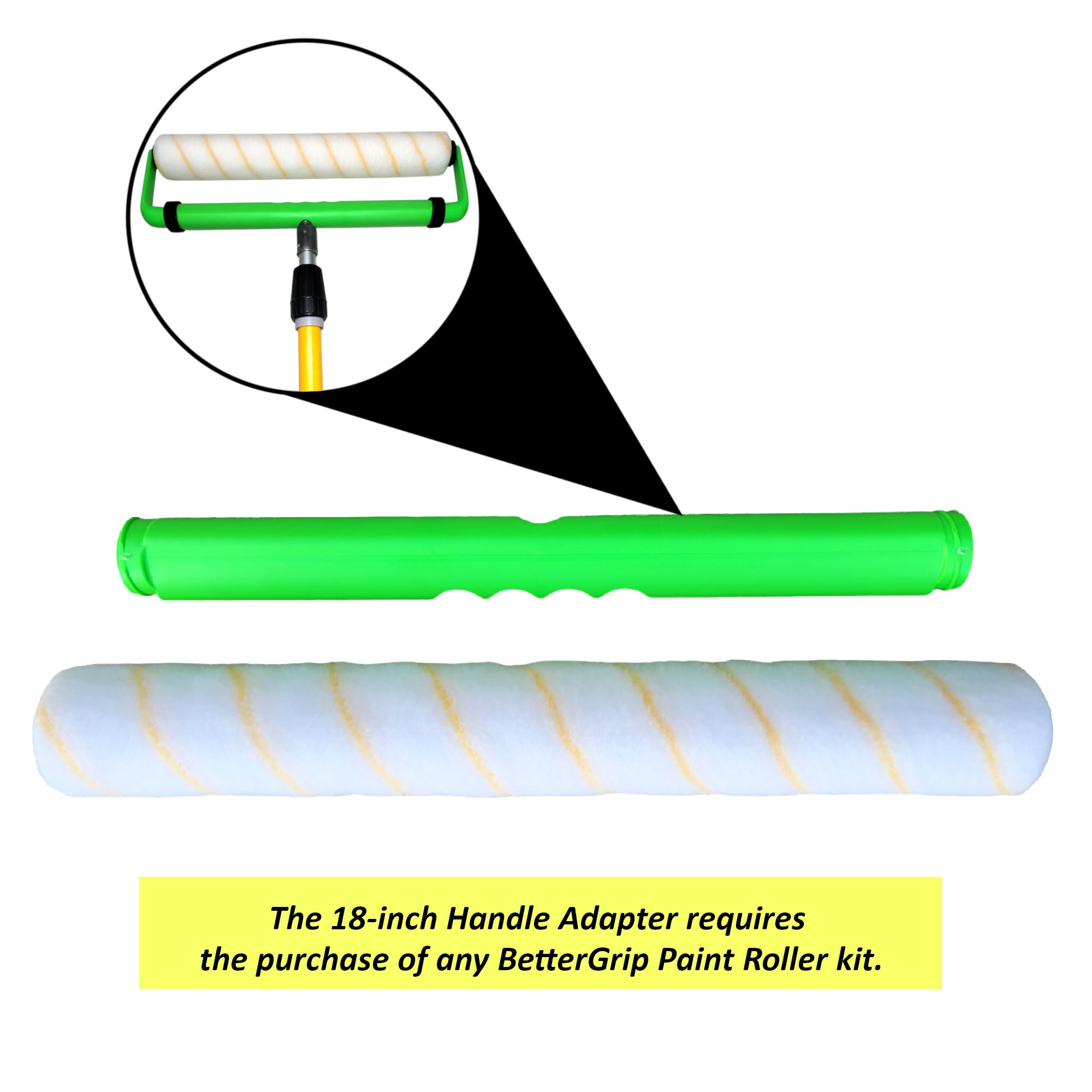 For larger projects, painters can convert any BetterGrip Paint Roller into an 18-inch frame, by simply replacing the main handle and cover.