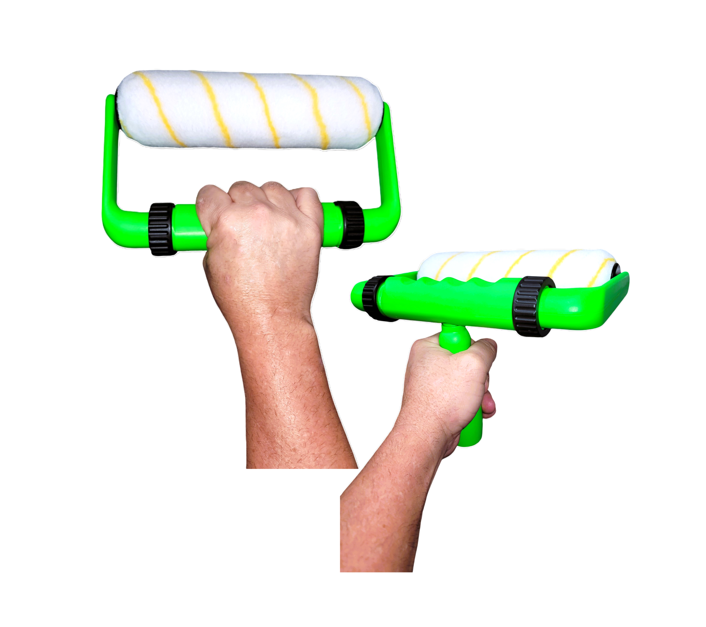 Traditional Wire Frame Rollers typically force painters to flex their wrist, creating an unnatural hand position. As a result, when painting for extended periods of time, painters often experience additional soreness and fatigue in their hand and wrist.