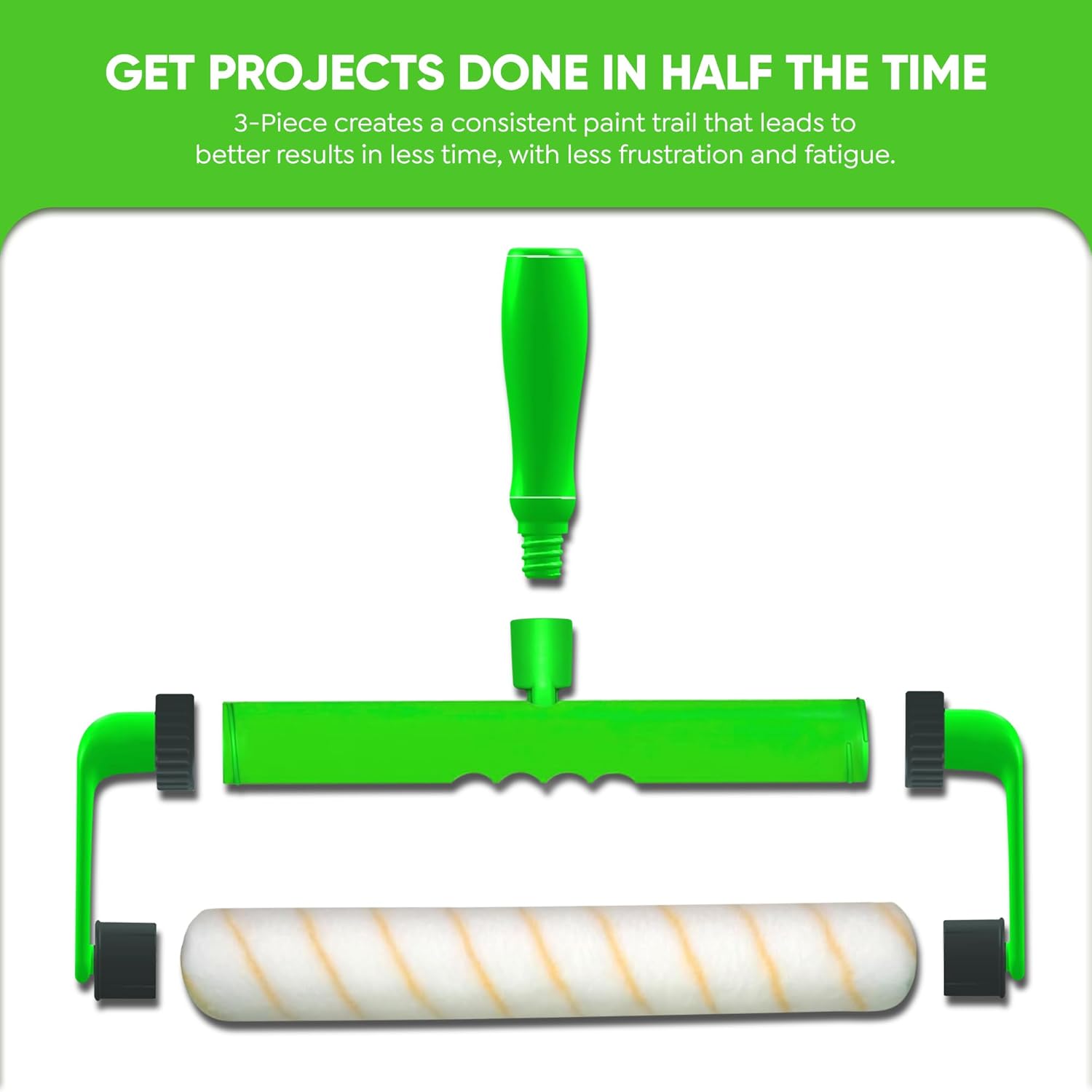 - GET PROJECTS DONE IN ½ THE TIME: 3-piece paint roller frame attaches on both sides of the roller cover, allowing painters to apply equal pressure. This creates a consistent paint trail that leads to better results in less time, with less frustration and fatigue. Great for professionals and DIYers!